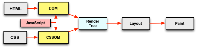 - 渲染阶段:浏览器接收数据后的处理,最终呈现用户可见页面。可以理解为domLoading事件之后的阶段,先后顺序依次为: