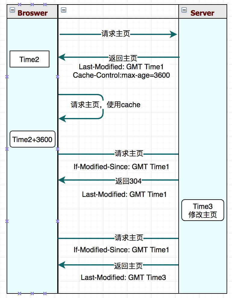 If-Modified-Since: time1 | Last-Modified: time2 | get or head | Tue, 12 Sep 2017 08:59:08 GMT | 是否过期,没过期返回304,会被If-None-Match覆盖